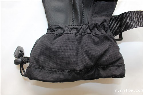 o产品特点:户外滑雪手套,防风防滑保暖手套,手腕处粘扣带调节松紧,掌心PU起到防滑的作用,袖口处附有圆珠扣调节袖口的松紧。